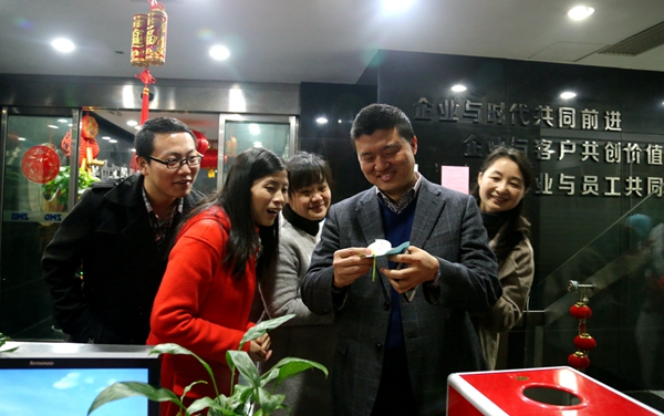 ??????? 在濃濃的“開門”喜氣中,袁董事長(zhǎng)肯定了公司過去一年的良好業(yè)績(jī),由衷感謝大家的辛勤付出,并鼓勵(lì)每位員工再接再厲,共創(chuàng)輝煌。員工們備受鼓舞,精神抖擻,紛紛表示,要以良好的精神面貌抓住新機(jī)遇,干出新業(yè)績(jī)。