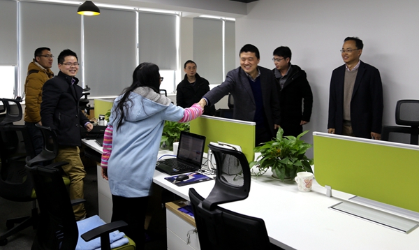 ??????? 羊辭舊歲山佩玉,猴接新年日流金。2月15日,正月初八,農(nóng)歷猴年春節(jié)長(zhǎng)假后的第一個(gè)工作日,袁仁軍董事長(zhǎng)率公司領(lǐng)導(dǎo)班子成員,逐一走訪慰問了總部各職能部門、駐長(zhǎng)業(yè)務(wù)單位員工,向大家拜年并送上新春祝福。